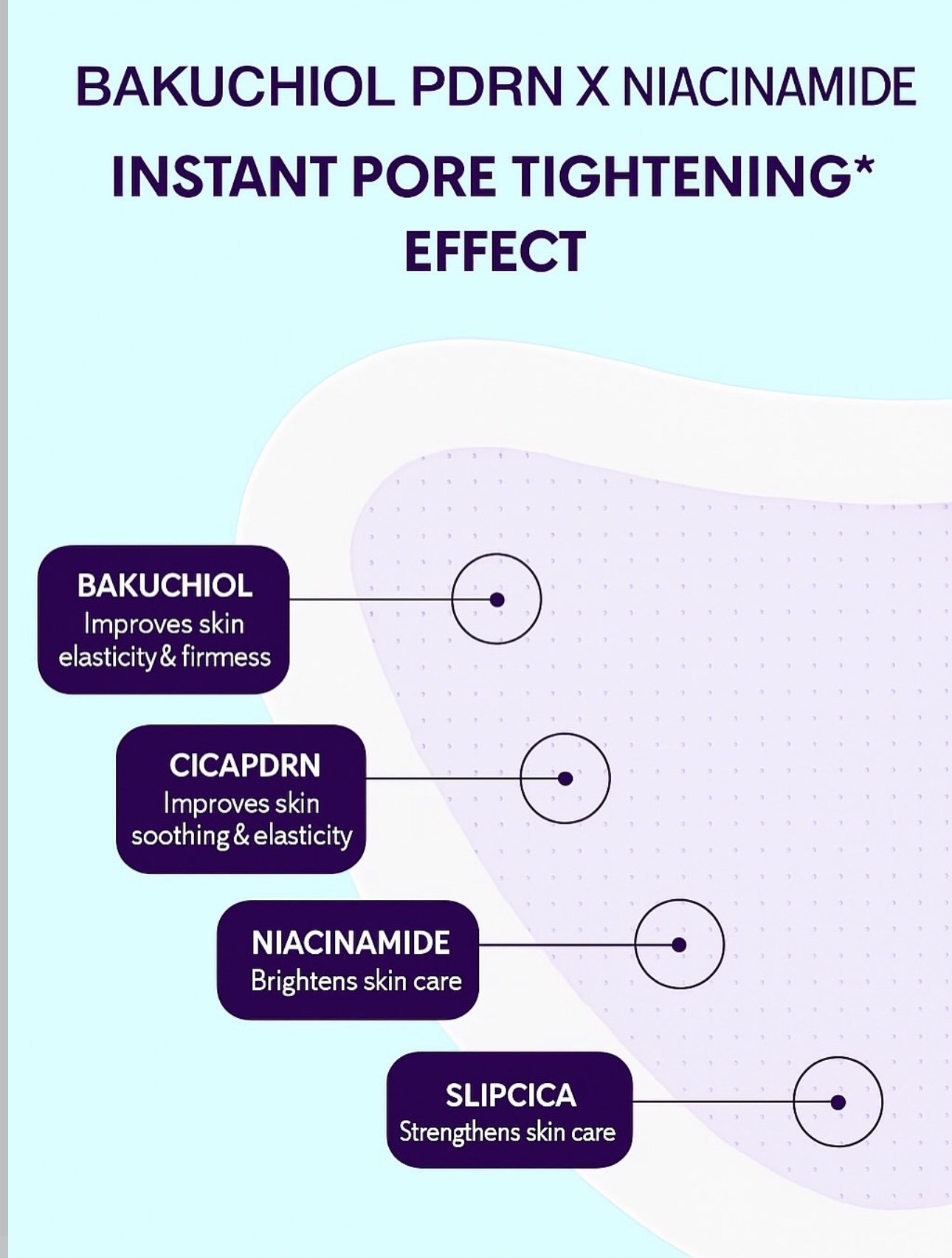تحتوي على الباكوشيول لتحسين ملمس البشرة ومرونتها، وCICA PDRN لتهدئة البشرة وتعزيز مرونتها. كما تضم النياسيناميد للتفتيح والتحكم في إفراز الدهون، وSleep CICA لدعم حاجز البشرة والعناية به أثناء التعافي.